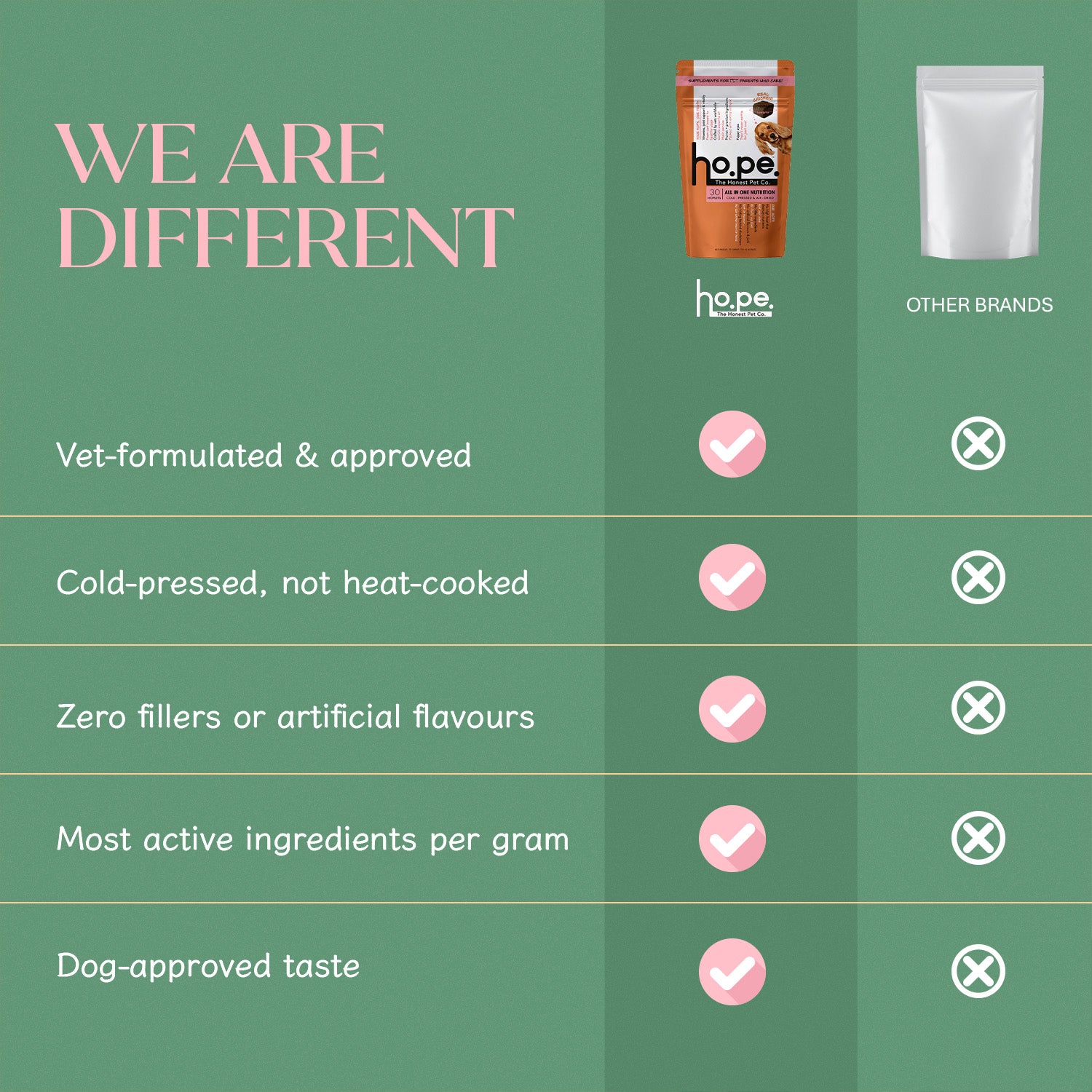 ho.pe. nails it — clean, functional, and tasty supplements. Cold-pressed, air-dried, evidence-backed. As a vet, I recommend it. As a pet parent, you’ll love it.