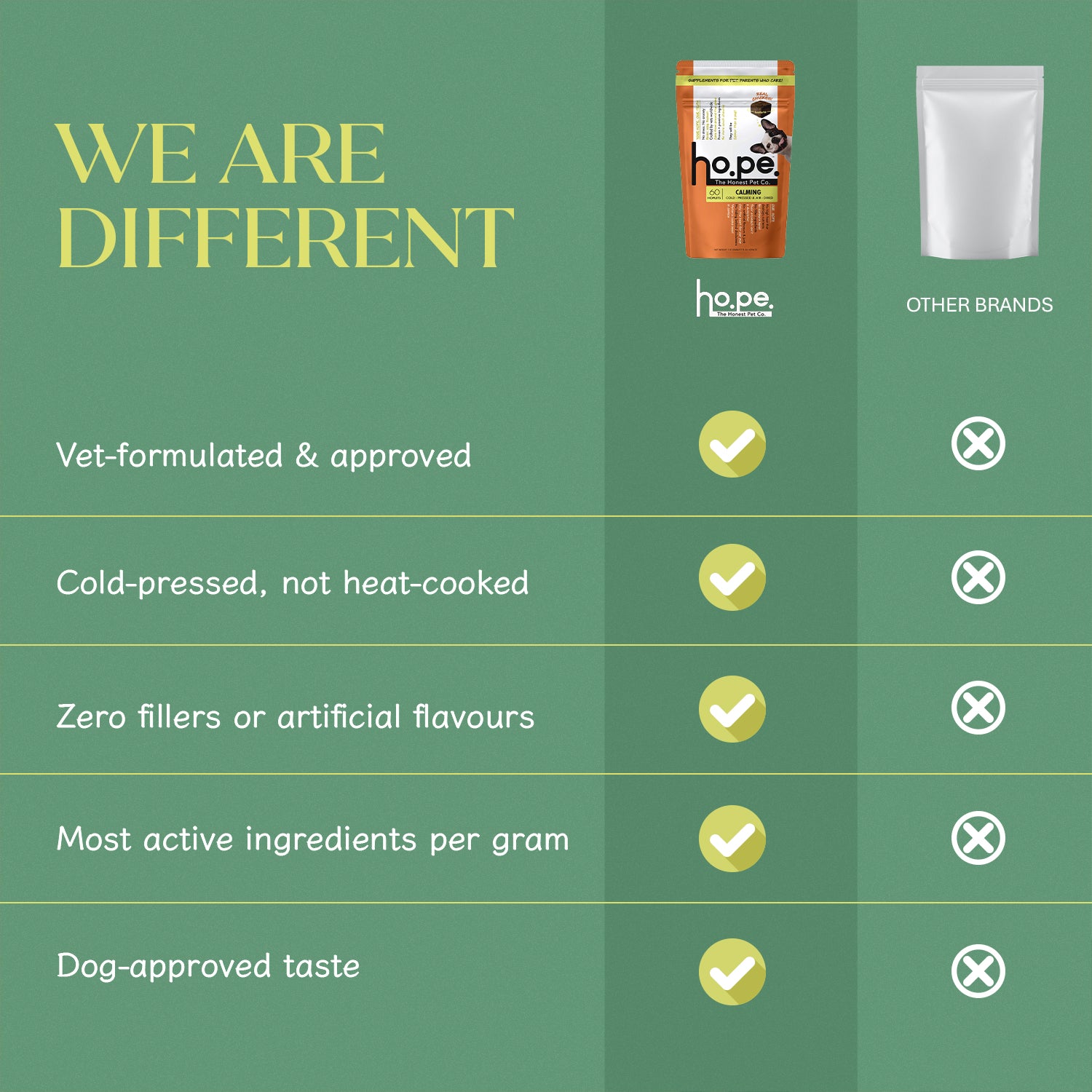 ho.pe. nails it — clean, functional, and tasty supplements. Cold-pressed, air-dried, evidence-backed. As a vet, I recommend it. As a pet parent, you’ll love it.